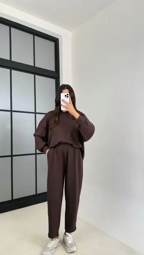 Uzun Kol Kazak Beli Lastikli Pantolon İkili Modal Kumaş